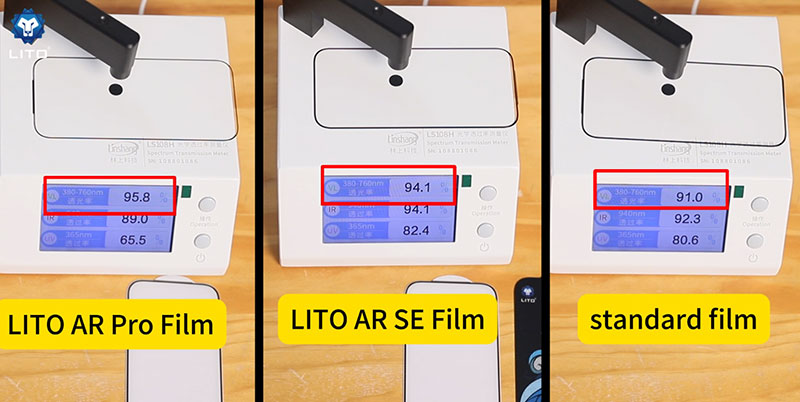 Récemment, notre laboratoire a mené une étude approfondie. ll test de comparaison entre LITO AR PRO, LITO AR SE et une protection d'écran en verre trempé classique. L'objectif : démontrer comment le revêtement antireflet modifie réellement les performances visuelles.